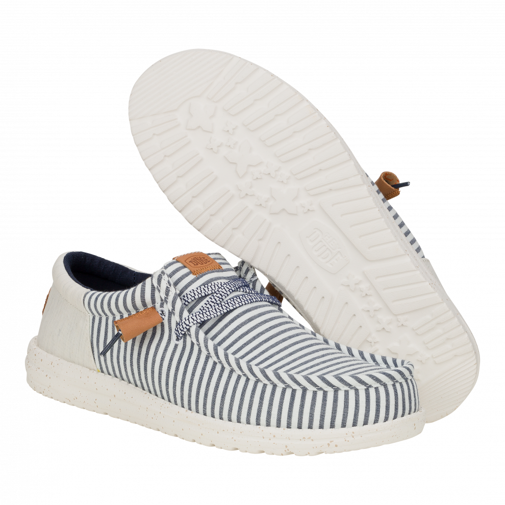 Inspiriran klasičnim prugastim krep tkaninama, ovaj novi model odlikuje se zgodnim, naboranim gornjištem i točkastim međupotplatom za dašak starinskog stila. Dodani detalji od kože omogućuju malo sofisticiraniji izgled, dok naš klasični sustav jednostavnog obuvanja osigurava da ste u trenu spremni za izlazak.