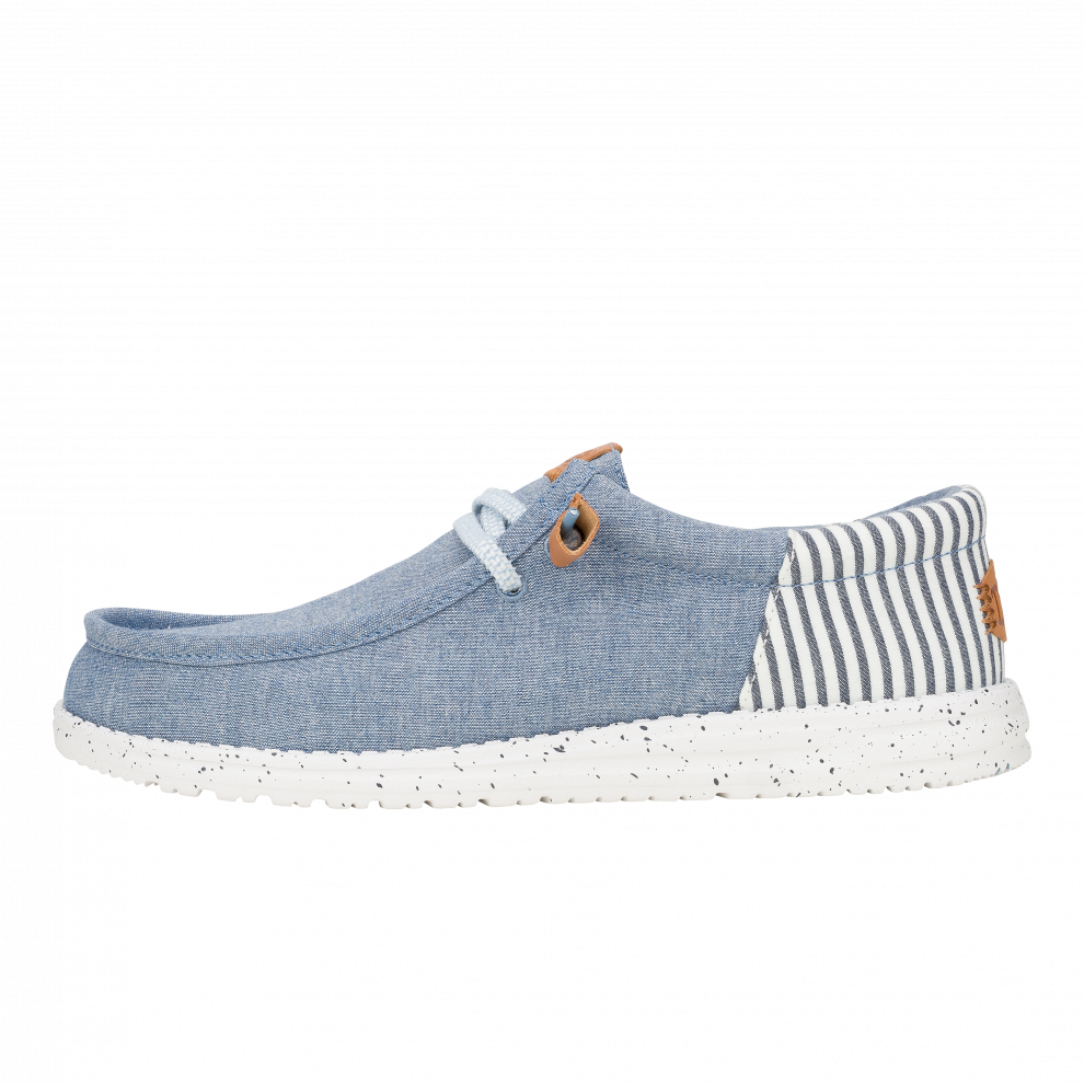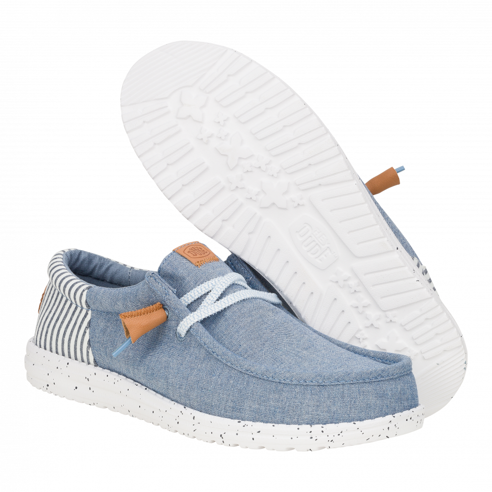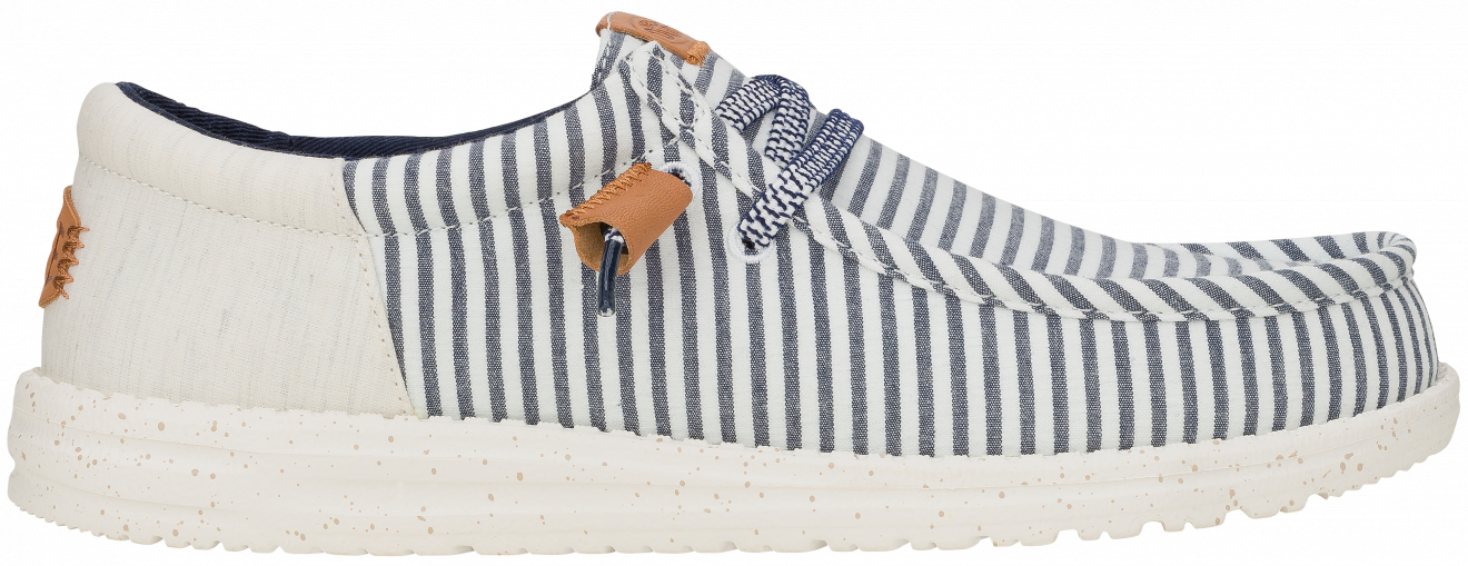 Inspiriran klasičnim prugastim krep tkaninama, ovaj novi model odlikuje se zgodnim, naboranim gornjištem i točkastim međupotplatom za dašak starinskog stila. Dodani detalji od kože omogućuju malo sofisticiraniji izgled, dok naš klasični sustav jednostavnog obuvanja osigurava da ste u trenu spremni za izlazak.