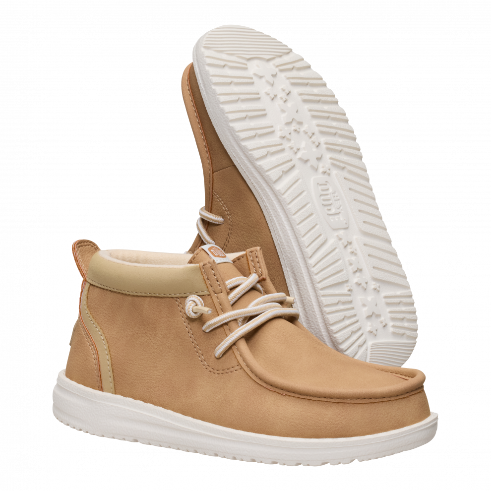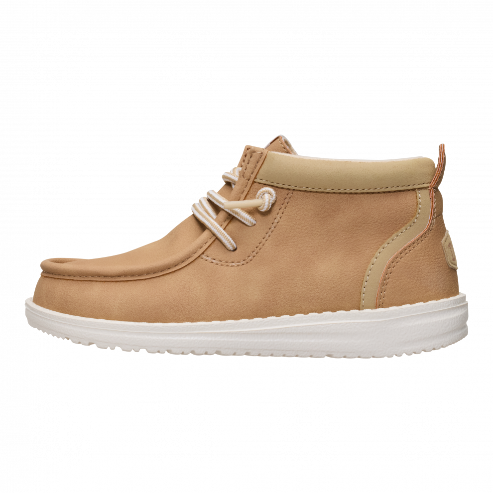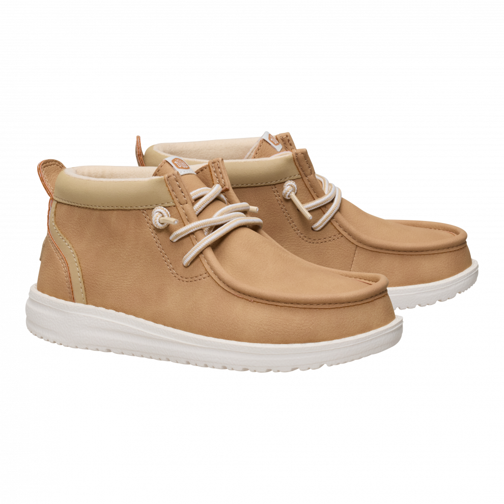 Ove Wally Mid cipele savršene su za djecu sa stilom koja vole jednostavnost. Izrađene od klasičnih materijala u svestranoj nijansi, srednje su visine do gležnja, a istovremeno se vrlo lako obuvaju. Zahvaljujući posebnim elastičnim vezicama HEYDUDE™, nije ih potrebno vezati za sigurno prianjanje.