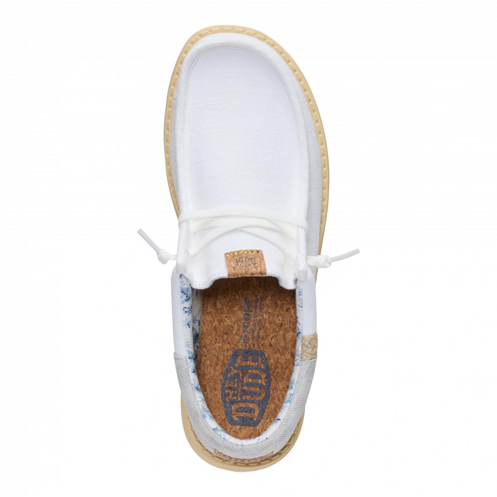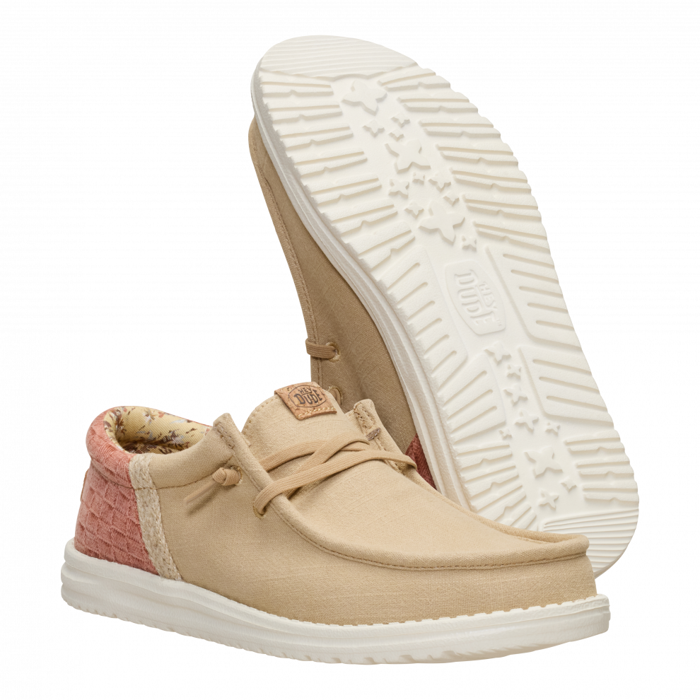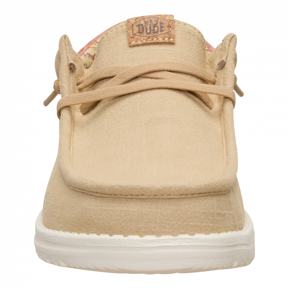Svaki ljetni dan trebao bi biti ugodan poput boravka u turističkom odmaralištu. Ove Wally tenisice spremne su za sve situacije, od druženja u baru pored bazena do uživanja na hotelskom balkonu. Možda te odvedu i na izlet. Sve je moguće. Uložak je od pluta, što znači da ti čarape nisu potrebne. Prednji dio je od lana, poput tvojih najboljih ljetnih hlača.