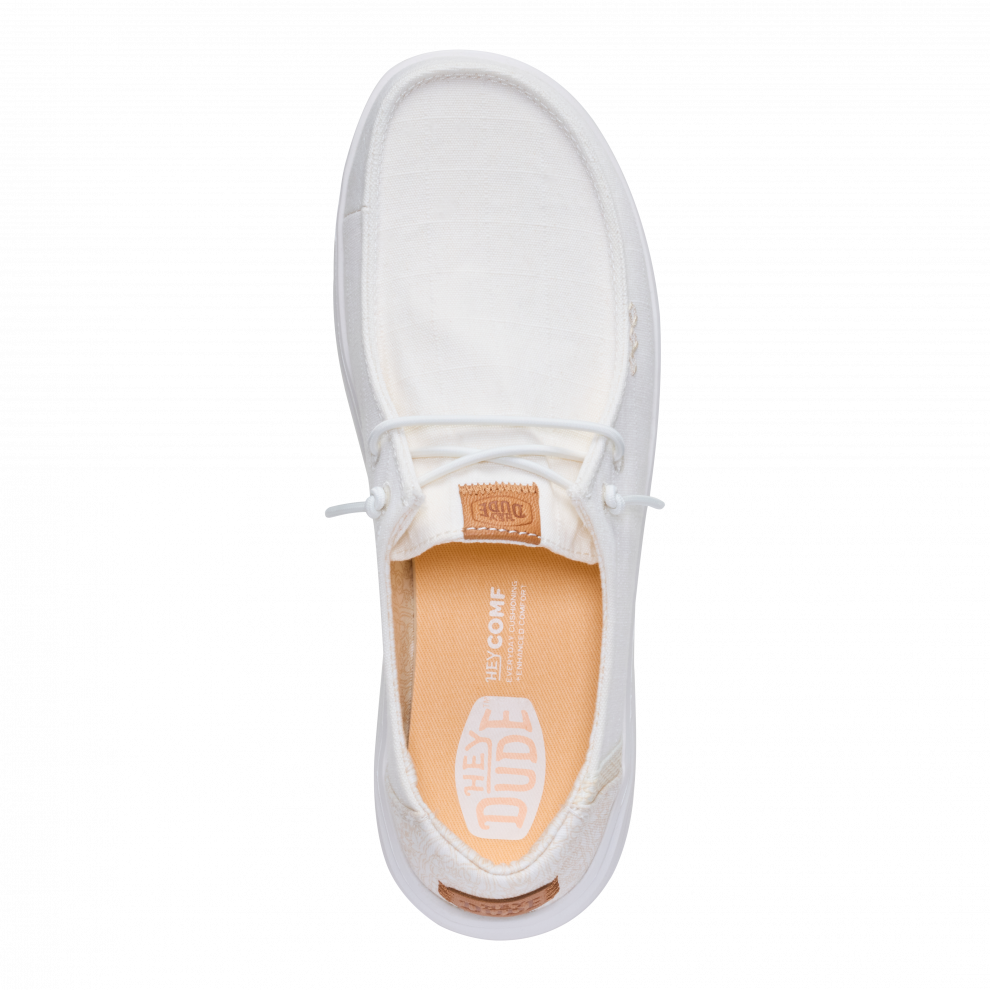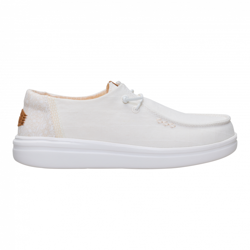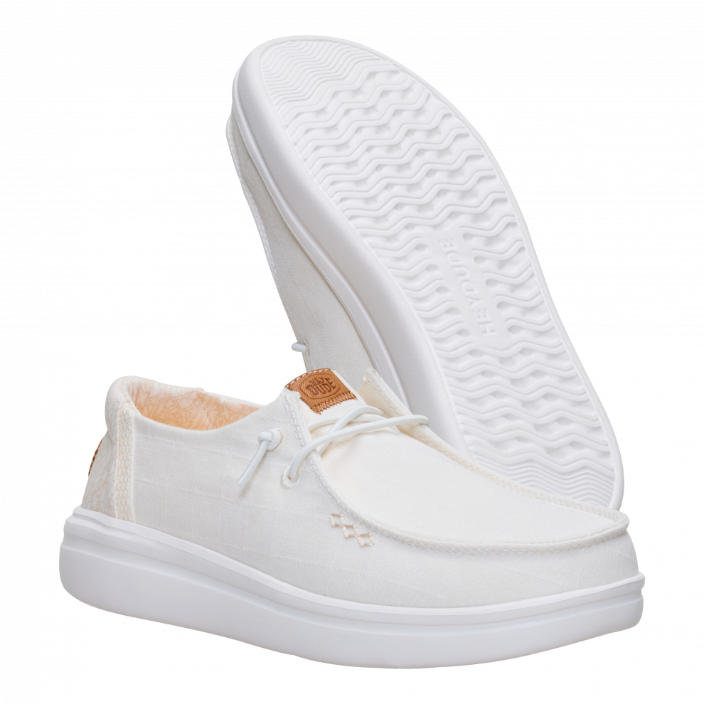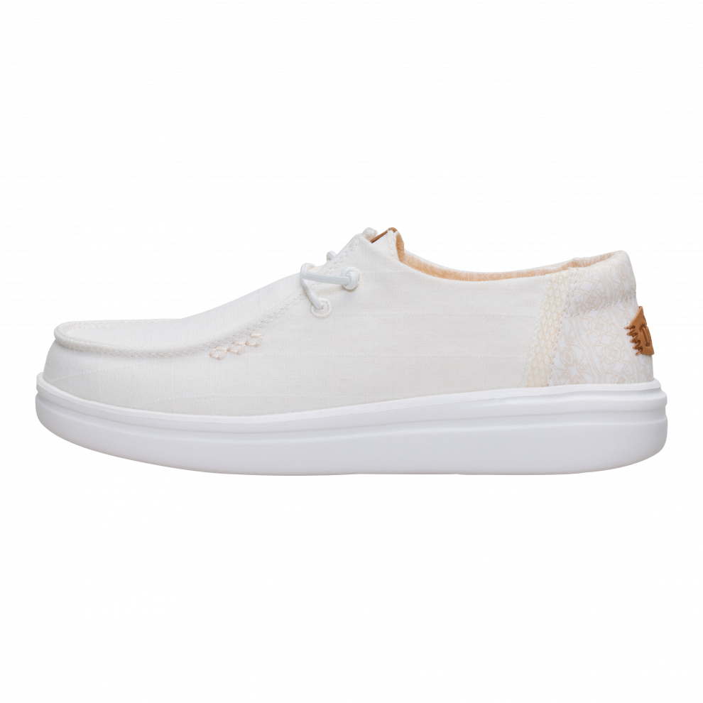 Izdigni se iznad mase. Tenisice Wendy Rise ističu se odvažnijim potplatom od klasičnih Wendy modela. Odlikuju se gornjištem od chambray tkanine s izvezenim šavovima na peti – mali detalj s velikim šarmom. Mekani uložak od pjene i lagani potplat jamče da će tvoja stopala biti udobna tijekom cijelog dana.